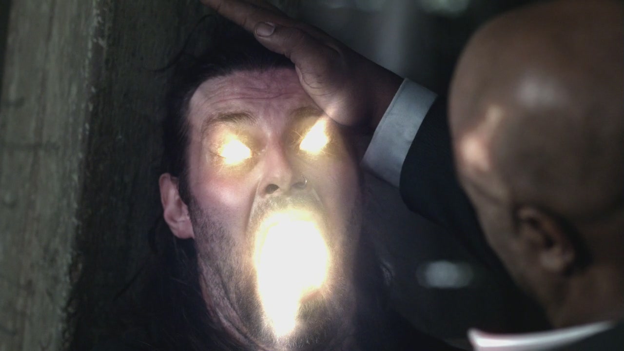As the fight started, Uriel charged one of the demons who proved to be no match for the powerful angel. Uriel slammed the demon up against a wooden beam, breaking it. The second demon tried to help out, but Uriel sent him flying across the room with an elbow to the face and then smote the demon he was grappling with against the beam. As Castiel fought Alastair with the help of the Winchesters, Uriel knocked the other demon out and smote him as well. While Uriel was distracted smiting the demon, Anna took the opportunity to grab her grace back from him and reabsorb it, becoming an angel once more.