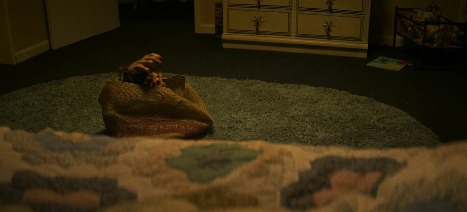 As everyone celebrates, Bori Baba suddenly emerges from its sack, shoves John across the room and turns on Lata. Faced with her childhood nightmare, Lata shoves Bori Baba across the room and John decapitates it with a knife. Vulnerable in the outside world, Bori Baba dies, and Carrie stomps its head in, calling it a stupid monster.