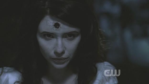 CEMETERY - Sam and Dean light candles surrounding her grave bed, waiting for her to arrive. They decide to use Sam as bait to lure her back into her grave. Angela sneaks up behind Sam. Hearing her, Sam turns around and fires a direct shot into her forehead. A now extremely pissed off zombie, Angela sprints after Sam, knocking him over and injuring his hand severely. Dean, right behind Sam, fires shots into her chest, causing her to fall directly into her grave bed. Dean makes one final stab into her chest with a long metal stake and says once again, "What's dead should stay dead."