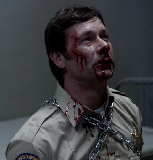 When Sam Winchester, Castiel, and Bobby Singer come to investigate a bar that erupted into a fight and left numerous corpses, this Starship along with two others arrested the trio and dragged them back to the police station. He personally put handcuffs on Bobby Singer.