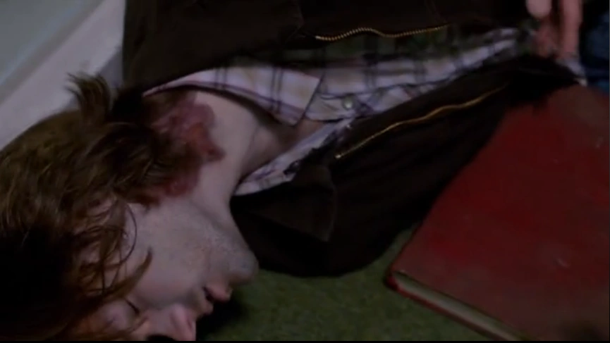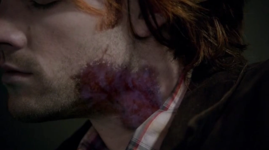 Sam Winchester is struck by a dart spell.