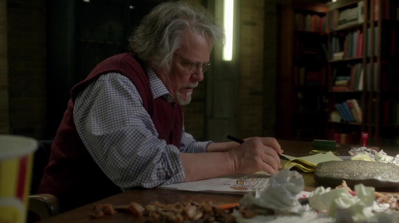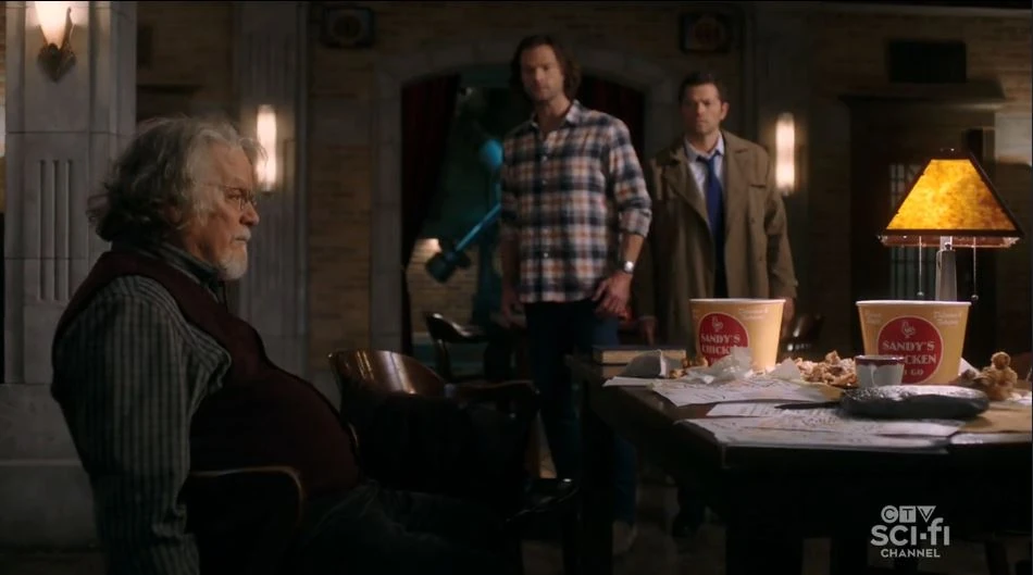 The Winchesters decide to bring Donatello to the Bunker, informing him of everything as he is shocked. Once at the bunker, Donatello meets God, much to his disbelief, and he also meets Metatron, who introduces himself as the Scribe of God.