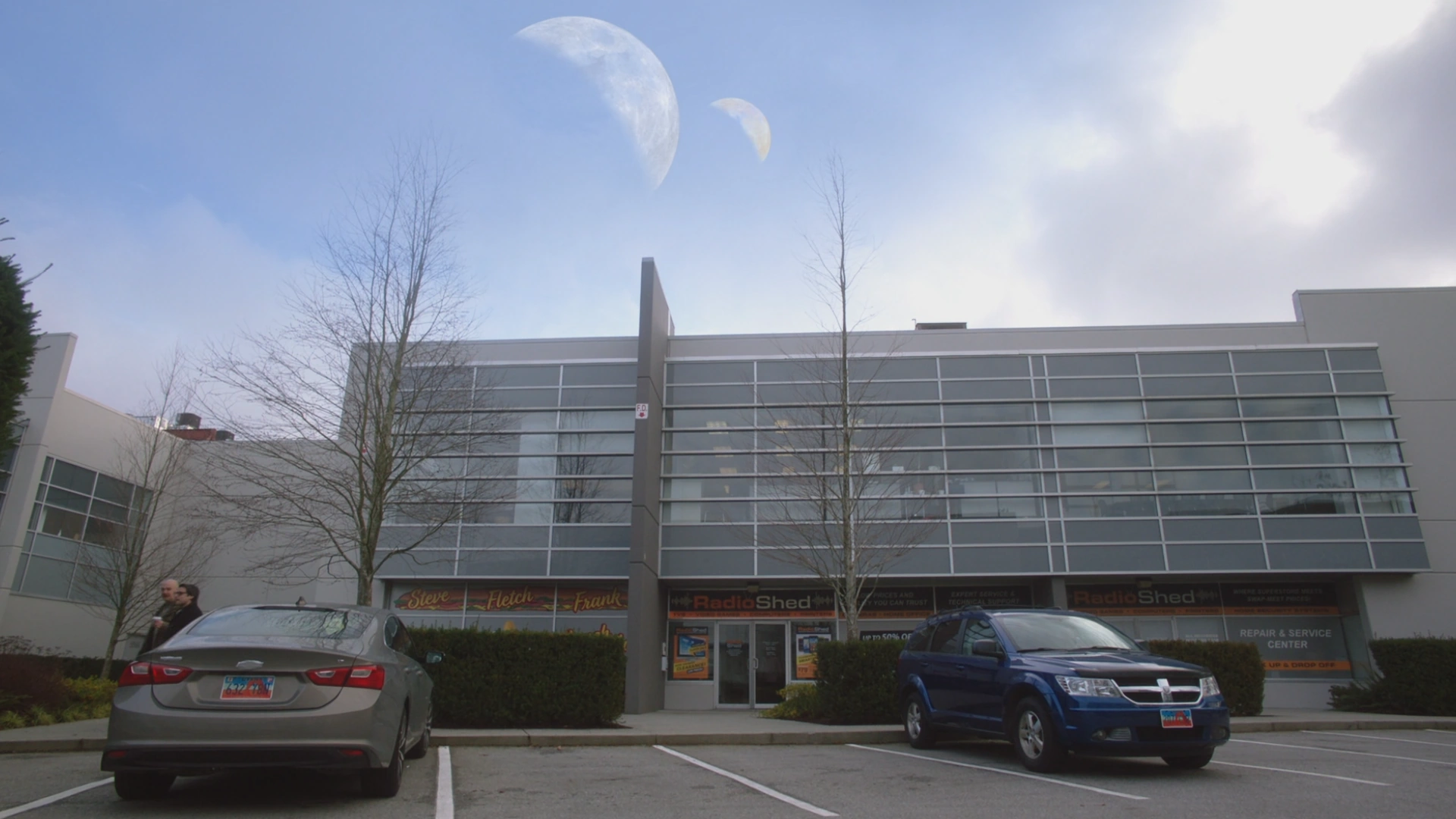 For several weeks, God sat in Radio Shed and watched the worlds he's destroying on the TV screens. He approaches the sleeping clerk who wakes up to nervously ask if he's finished, and Chuck says that it takes a while to destroy some worlds and they'll need more of his attention. The worried clerk asks if Chuck will spare them, saying that he's served Chuck for weeks, and Chuck assures him that he'll be fine and that everything is fine. Chuck walks out and behind him, meteors smash down on the Radio Shed as Chuck destroys Earth 2.