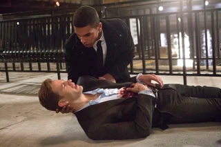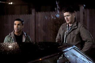 Ennis came to the Duval Family mansion where he saw Sam and Dean, waiting outside. Ennis stayed off their sights and trespassed inside the house when he heard a scream he rushed there as quickly as possible and saw that the person who killed his fiancé is about to kill David, so he shot at him but he missed. Then he kidnapped Violet Duval, David's ex-girlfriend and sister to Julian Duval. When the Winchesters found them, they asked them what happened there? David said everything. There are five monster Family that runs Chicago. Dean who was both angry and surprised by this new piece of information, exclaimed "What is this, Godfather with fangs?" And Sam asked David that was his ex-girlfriend is a shapeshifter like him. When David answered that she was a werewolf, both Dean and Ennis said nothing but "Awesome!"