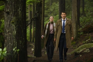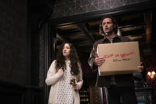 Back at the bunker, Sam is preparing the spell to make Eileen flesh again. He runs a bath and pours ingredients into the water. Eileen steps into the water as Sam recites the spell. When he's finished, Eileen steps out of the water, naked, and wraps herself in a towel. She walks over to Sam, hugs him and says, 'Thank you'.