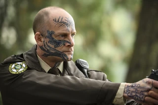 While this is all happening, Castiel stumbles into a case at a lake where one kid disappeared and was subsequently pulled from the lake, drained of his blood, and another is now missing. The local Sheriff is not being helpful so Castiel accompanies the missing kid's mom to the area where he was camping. The kid explains that he saw a monster dragging a body into the lake. He ran away, fell and twisted his ankle. At this point Sheriff Roy shows up, calling Castiel and the kid 'a big pain in his ass'. Castiel pulls out his Angel Blade and Sheriff Roy reveals that he is a Djinn. Sheriff Roy shoots Castiel in the chest (which heals immediately) and Castiel stabs him repeatedly with the Angel Blade.
