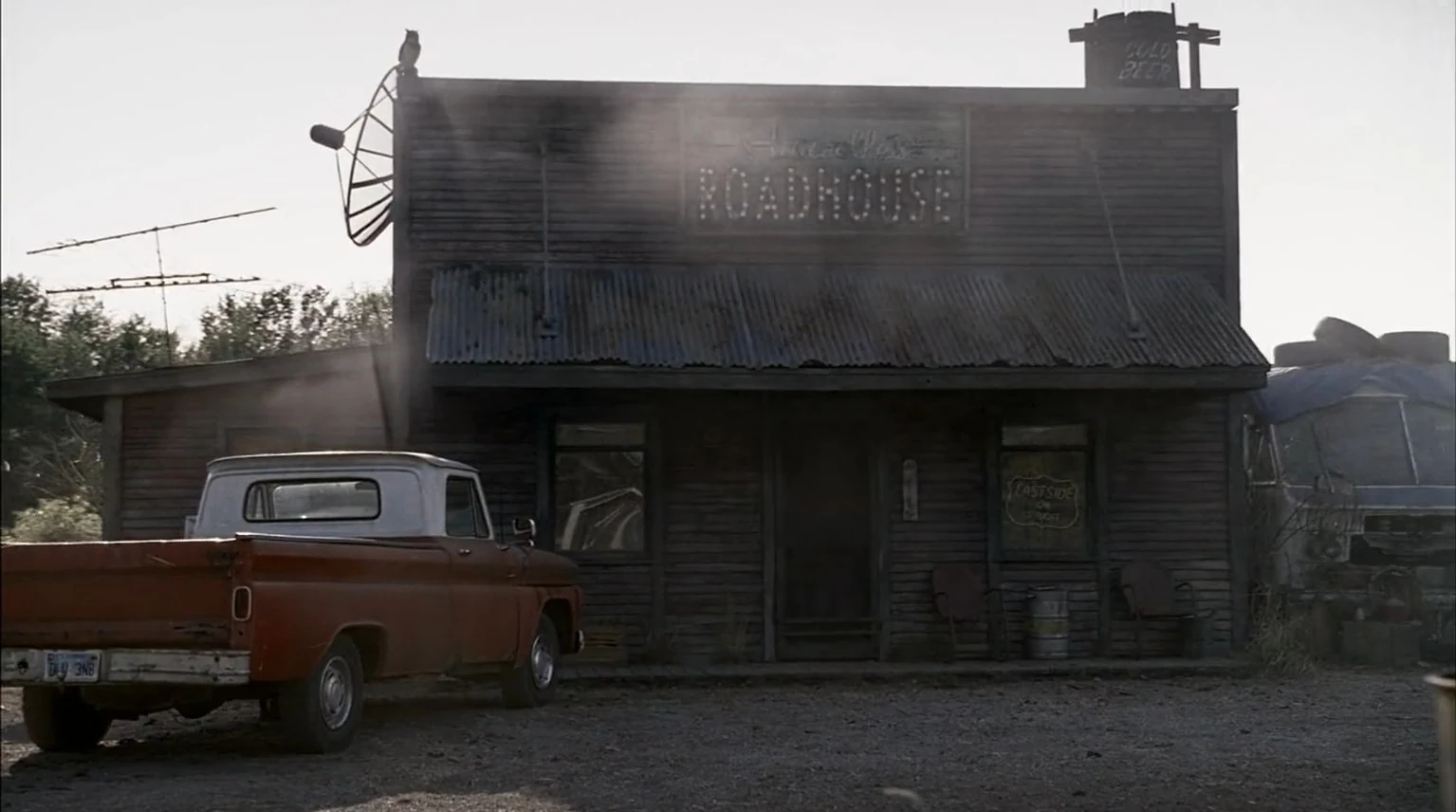 It was among many locations used in Marie's play on the Supernatural books by Chuck Shurley, the being known as God unbeknownst to her.[10] It was part of Becky Rosen's diorama. When Dean died to the vampires and was sent to Heaven, he came across the Roadhouse where Bobby was sat outside drinking where he explained that Jack Kline had made Heaven a better place to rest after God had been defeated.[11]