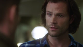 After getting Castiel's message, Dean rushes to the Bunker, where he sees Castiel and immediately asks about Sam. Castiel curtly replies Sam is fine, then walks toward the infirmary. There, Sam informs them that he saw Chuck's memories, and Chuck is weak. He declares he thinks they can beat God.
