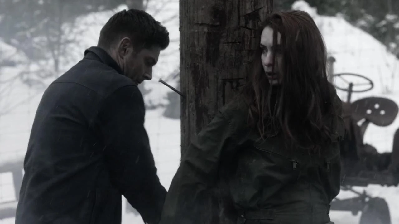 After opening a rift between the Main Universe and Apocalypse World in an effort to rescue his mother and the Nephilim Jack, Dean traveled through with Arthur Ketch.[1] Shortly after arriving in a snowy forest, the two men witnessed the execution of two prisoners on a bridge by several angels and the discovery of Charlie Bradbury amongst them. Recognizing Charlie as a high-ranking member of the resistance, the commander ordered Charlie taken to the nearby POW camp for interrogation. Ultimately, Charlie didn't break under torture and the commander decided to execute her instead.
