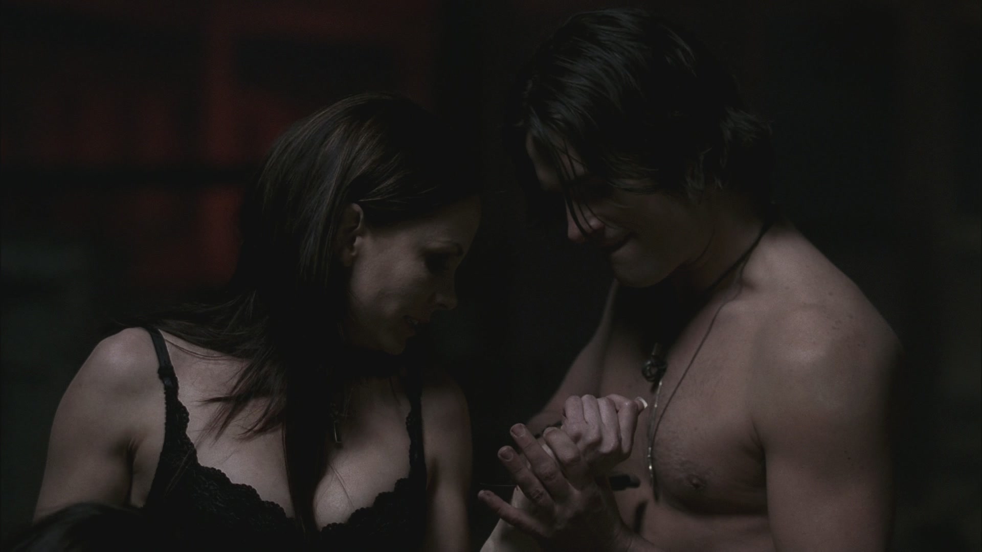 Luther cutting Katie's wrist.