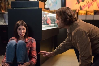 On Halloween, Sam and Dean arrive at the comic shop. Dean notes the similarities between Sam and Samantha, but Sam also points out Dean’s similarities with Dirk Winchell, the other owner of the shop. At first, Dean disagrees, but then Dean and Dirk bond over a life-size figure of David Yaeger, aka Hatchet Man from the movie series All Saints' Day. Posing as insurance agents, the boys ask Samantha how to find Stuart and she directs them to his mother's house where he is now living.