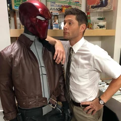 - In the store, Sam and Dean pass by a lifestatue of Red Hood. In the 2010 movie Batman: Under the Red Hood, Jensen voiced Jason Todd, aka Red Hood.