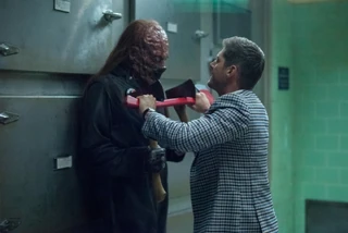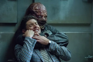 At Stuart’s mom’s house, Stuart denies the story about Panthro attacking him and demands they leave, but not before letting it slip he dated and dumped a Wiccan. Dean thinks they may be dealing with a witch who has cursed Stuart. They decide to wait until Stuart and his mother leave to check the house for hex bags. After Stuart's mother, Barbra, leaves and just as Sam and Dean are wondering how to get Stuart out of the house, Stuart staggers out the front door, bloody and screaming for help. As Sam tends to Stuart's wounds, Dean checks the house, and has to dodge the bloody flying chainsaw that attacked Stuart, which becomes embedded in the basement wall.
