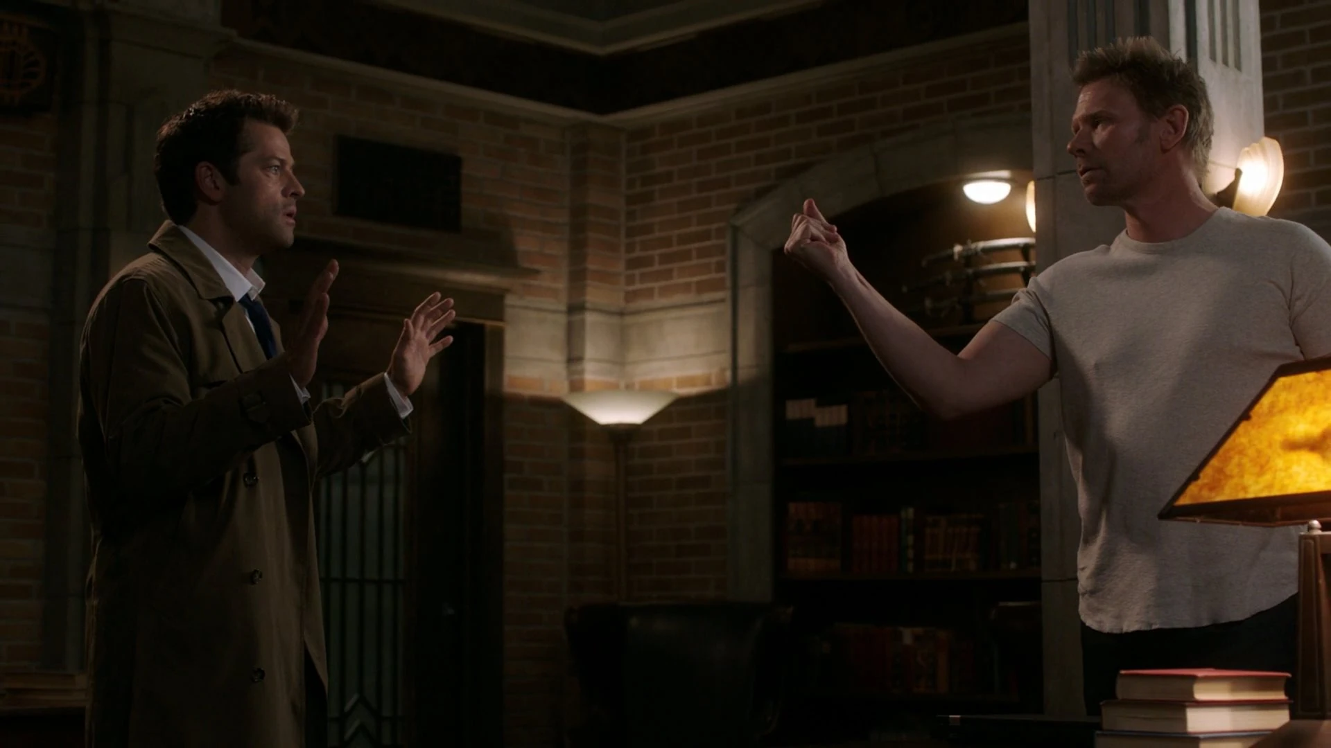 Later, Nick arrives in the bunker's main room, having researched the murder of his family and having discovered that the case is still unsolved despite there being a witness who subsequently recanted. Nick's behavior alarms Castiel, particularly when he snaps his fingers at Castiel in a Lucifer-like manner after being enraged. Castiel examines Nick and determines that while Lucifer is gone, he may have done more damage to Nick's psyche than they realized. Castiel admits to sympathizing with Nick, explaining his own history with his vessel Jimmy Novak. However, Nick sees Castiel as no better than Lucifer for what he did to Jimmy, leading Castiel to tell Nick that what happened to Jimmy and his family is the biggest regret of his long life.