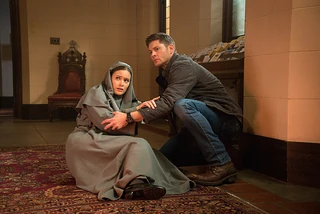Dean and Sister Mathias begin searching the church, discussing how Isabella could have gotten around by possessing people