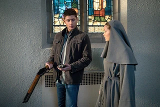 Sam and Dean pose as FBI agents to investigate the case of Terry Sloan and two other suicides, all Catholics. They visit Father Delaney in the church to discuss the McCarthy murder, asking about Frank's confession, but Father Delaney won't reveal anything he said. He does confirm, however, that all the victims (all men) had recently been to confession. Father Delaney introduces Sister Mathias, Dean checks her out and they introduce themselves as agents Allman (Dean) and Betts (Sam). Sam goes to snoop around, leaving Dean with Sister Mathias. During their talk, she hints that Frank as well as an earlier victim were possibly cheating on their partners. Dean then questions Sister Mathias about her choice to become a nun, and why someone would choose to quit one's life for something so different, to which Sister Mathias says she needed to find something larger than herself to focus on.