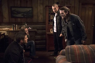 While on the way to a cabin where Tasha would go to, Dean and Sam have another discussion about whethere either of them are truly ready for hunting, as they both have to face their actions they committed. Once arriving at the cabin, Dean handcuffs Kate to the car, revealing their deception. While Kate is furious they are not giving her sister another chance, Dean sharply retorts that when a person commits terrible acts, they can't come back from them, as they are too far gone. They leave a pleading Kate in the car as they head in, guns at the ready. Sam finds Tasha in her room. She is unafraid that he will shoot... because she has two allies with her. The brothers are held at gunpoint by werewolves who Tasha turned, creating her own pack.