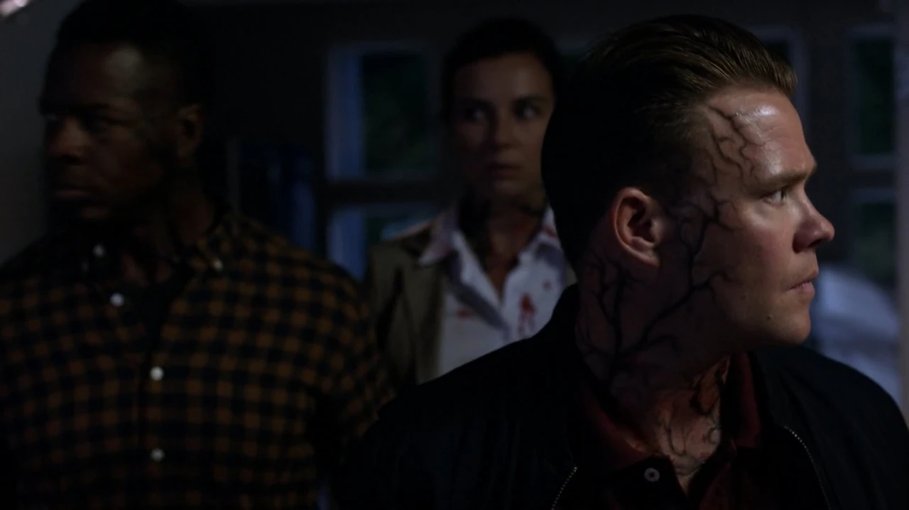As Dean, Jenna and Amara escape, Sam locks himself in a supply closet where he is attacked by a Rabid nurse. Sam slits the Rabid's throat with a scalpel, but his face is splashed with her blood as she dies, giving Sam the Rabid infection. The three Rabids chasing Sam break into the room and pin him against the wall, but detect his infection and leave him alone. A little while later, Dean calls Sam to tell him that they have safely gotten out of Superior and that the Rabid infection seems to be confined to the town. Sam simply tells Dean that he will find a cure before checking himself out in the mirror, finding the black veins of a Rabid infection on his chest.[5]
