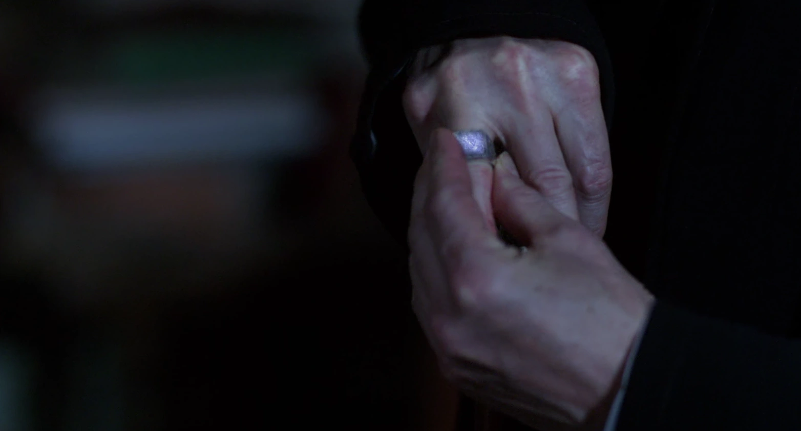 Pestilence's ring is silver like Famine's and Death's, and has a round green stone on it. He uses this ring to spread diseases in a hospital to test their effects on humans. He loses it when Castiel cuts off two of Pestilence's fingers using Ruby's Knife, separating him from the ring.