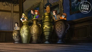 They all meet up, and the Phantom attacks them, with Fred getting injured, and Shaggy getting thrown out through the balcony door. Sam and Dean drive off the Phantom, using iron candlesticks and find Shaggy holding on for his life. Scooby jumps to save Shaggy and Castiel jumps and slows their descent to the ground with the help of his coat, but Shaggy's arm gets broken. With Shaggy's injury and the unexplainable abilities displayed by the Phantom, the Scooby Gang is confused by the unusual circumstances. Sam and Dean decide to tell them that all the paranormal stuff is real, including the ghost. The Gang begins to have a nervous break down by this revelation, but Dean encourages them and gets Fred to set a trap for the Phantom.