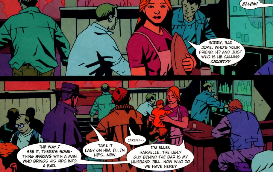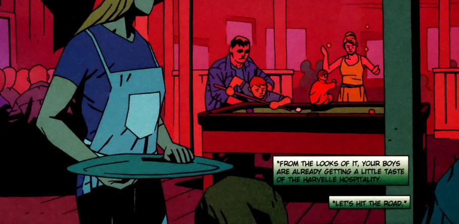Hunter and the Winchesters arrive at the Harvelle's Roadhouse where inside, they meet a woman who introduces herself as Ellen Harvelle and the man working behind the bar is her husband, William Harvelle, she tells the two men to relax and that she will look after Sam and Dean, explaining that she has a daughter of her own around Dean's age. After sitting down, John explains to the other hunter, Ichi, that he and Hunter are looking for a hellhound with Ichi also explaining that he is on his own case tracking down a Heeler. all agreeing to go though John refuses to allow his son to come with them, Ellen suggests that her niece can take care of the two and introduce them to Jo.