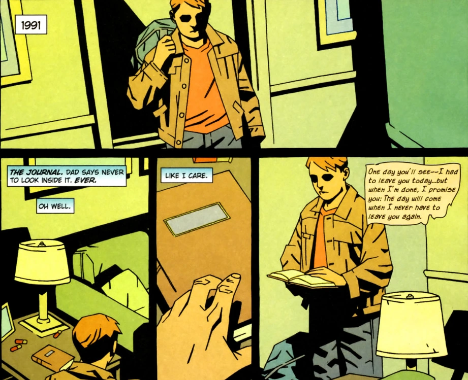 Dean then finds John's journal and reads through it despite not being allowed to and discovers the note his father wrote down when he and Hunter left for the few weeks telling him to be strong and there for his brother. Dean then tells Sam to get off his bed though Sam stays quiet.