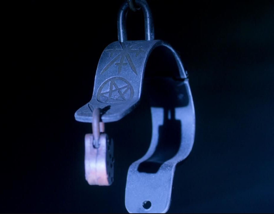 These handcuffs are etched with various supernatural symbols, including a pentagram. When a supernatural entity is cuffed by their or their vessel's wrists, all of their powers will be blocked, and, in the case of possessive entities, also unable to exit their vessel.