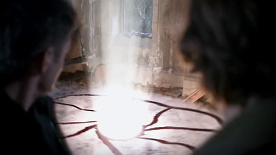 Sam and Dean are trapped in the vestibule as Lucifer breaks free of his confinement following Sam killing Lilith and breaking the last of The 66 Seals. Just as a blinding light and high pitched sound force them to their knees, they are transported into an airplane flying over St. Mary's Convent in Ilchester, Maryland, where Lucifer was confined. The pair spot Lucifer's release as the church is destroyed.