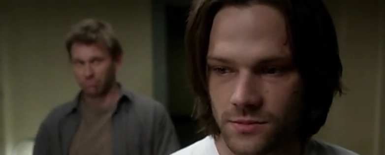 Dean arrives at the hospital and asks to see his brother, Dr. Kadinsky explains that Sam has had a psychotic episode and is locked up on their psychiatric floor. They are observing him so that they can determine how to treat him, and Dean tells Kadinsky that the non-sleep thing is new. Kadinsky takes Dean to see Sam, who is resisting the sedatives. Sam is still seeing Lucifer, and Dean tells him that he'll get him help. Sam isn't convinced, reminding him that the last healer they found was using a Reaper, and tells Dean not to bother because there's no hope. Dean considers and then walks out.