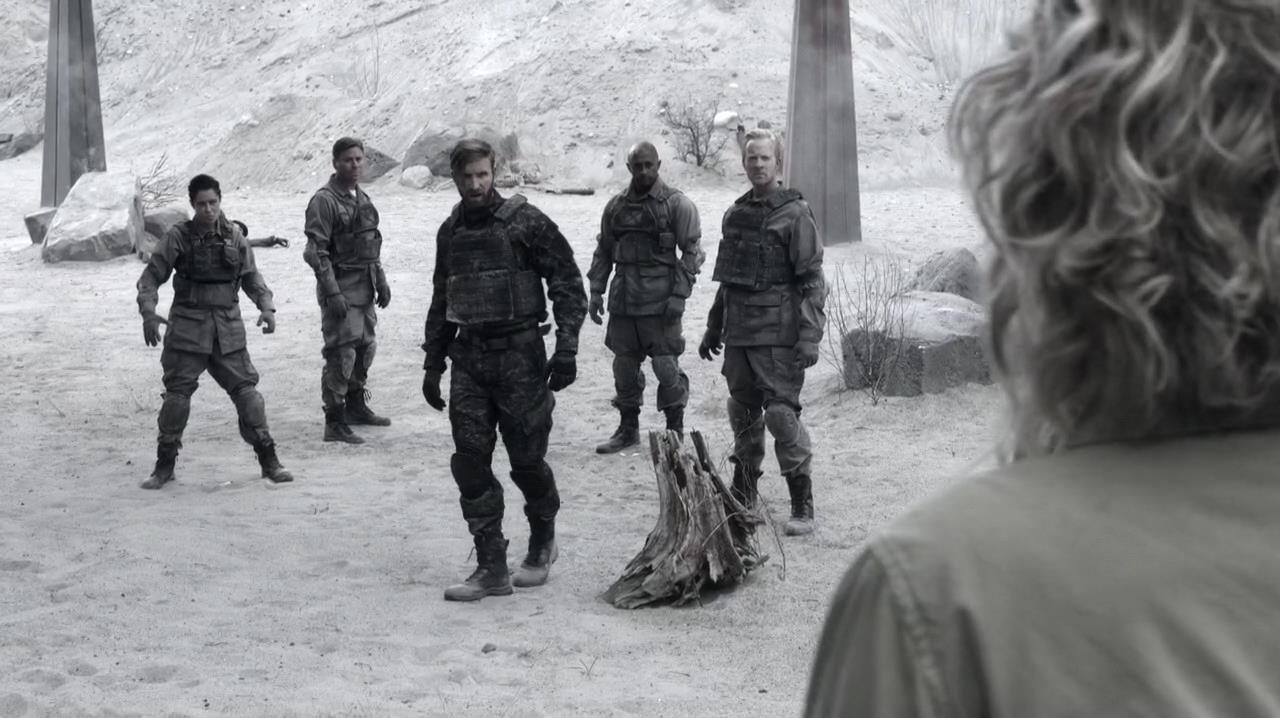 Meanwhile in the alternate world, Lucifer and Mary continue walking along the wasteland until Mary complains about being tired. Lucifer doesn't let her rest, pointing out that she is the reason they are here and it's not his fault she's a "wimpy human". The two are interrupted by the arrival of a group of angels in search of a creature from Hell. Lucifer jokingly suggests they are referring to Mary to which the angel replies with "False!" When Lucifer tells them who he is, the angel again replies with "False!" since the Lucifer of their universe has been slain by the Archangel Michael, to Lucifer's surprise.