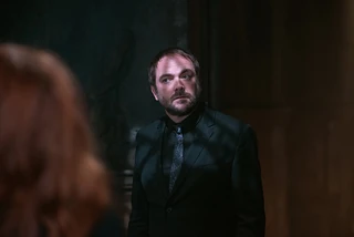 Back in the dungeon, Rowena tries to make friends with the demon chained next to her, stating that her crime was being a horrible mother. Crowley is venting to another demon, stating the same thing. How she abandoned him when he was eight, and almost traded him for three pigs. Especially hating his name, Fergus. But he refuses to kill her or let anyone else.