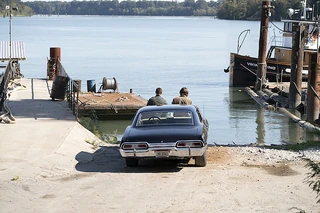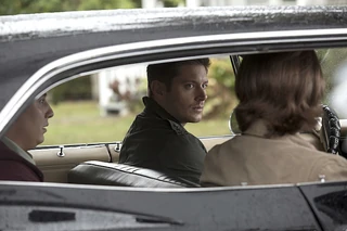 Later, Dean and Sam are leaning against the Impala, eating hamburgers and talking about Len turning himself in and how everyone reacts differently to losing their soul. Sam goes to tell Dean that he gets a pit in his stomach every time he thinks about the Darkness, saying they only know the tip of the iceberg of what she can do to people. Dean thinks that finding Amara might not be so hard at the rate she's growing and consuming souls. As they get into the car and leave, Amara walks towards the side of the road, out of sight of the car as it drives away. She bids Dean farewell, saying she'll see him soon.