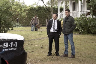 On their way to Len's house Dean tells Sam there is nothing there that says it's a ghost or anything that's their "thing." Sam says even if it's not their usual gig they may be dealing with a serial killer. Dean teases him, saying that it'd be a dream come true for Sam, but before Sam has a chance to respond he gets a call from the detective about another axe murder away from the inn. The boys decide to split up with Sam taking the new murder.