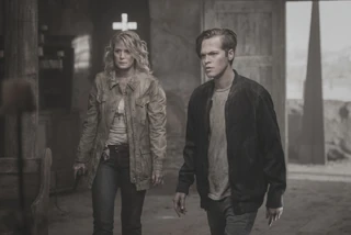 In Apocalypse World, Jack excitedly tells Mary that he killed Balthazar in battle and that Bobby is on his way back with 30 survivors. He notes that Mary doesn’t seem happy to hear that they’ve won their 3rd battle in a row, and she tells him that they are running out of space and supplies. She’s not sure how they’ll take care of everyone. Their conversation is interrupted by the sound of someone approaching. Mary draws her gun but lowers it as a man she calls Jacob steps into view and apologizes for startling them. He brings news: their spies outside of Michael’s fortress say the angels are leaving. Mary and Jack share a confused look, and Jack wonders aloud why they would do that.