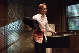 Back in Colorado, Gabriel tells Sam and Dean that he could feel Rowena’s tracking spell. Given his condition, Sam and Dean ask Gabriel what sort of trouble he’s in. Gabriel lies, deflects, and asks if the Winchesters have more of his grace. Dean tells him that they used what they didn’t return to him to open a rift. At this, Gabriel attempts to teleport away but is too badly injured.