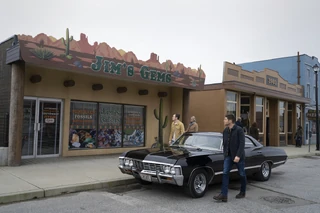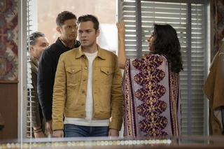 In the main room, Jack wonders if Sam is angry with him. Sam says that Jack sacrificing himself takes a lot of courage, but he still thinks that it's wrong. Dean comes in and says that they need to go to Santa Fe. Once Jack leaves, Sam tells him that he's not going with them. He asks Dean what he has to complete the final ritual, and says that none of it feels right. Dean tells his brother that it doesn't matter how they feel, and Jack isn't family. Sam is shocked at Dean's declaration, and Dean tells Sam that Jack isn't like Sam or Castiel. Jack comes in and apparently overhears them, and Dean tells him that they're going. Dean and Jack drive to Santa Fe in silence.