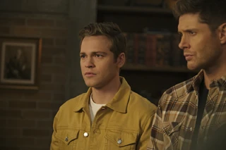 Sam returns to the bunker with the Book. Castiel tells Sam that Amara is there with Chuck, and Sam tells him that they have to stop Jack from killing them, just as Dean arrives with Jack clutching at himself. As they head to the room where Chuck is, Sam tells Dean that they're all being played by Billie and she'll take over as God. Dean says that he doesn't care, as long as Chuck dies. Sam stops Dean, begging him to listen to reason.