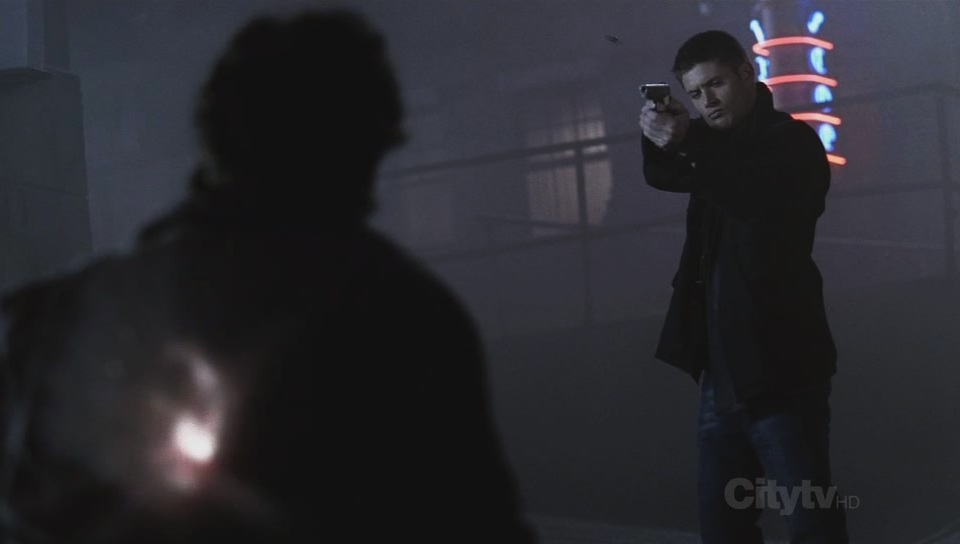 Dean kills a werewolf with a silver bullet.