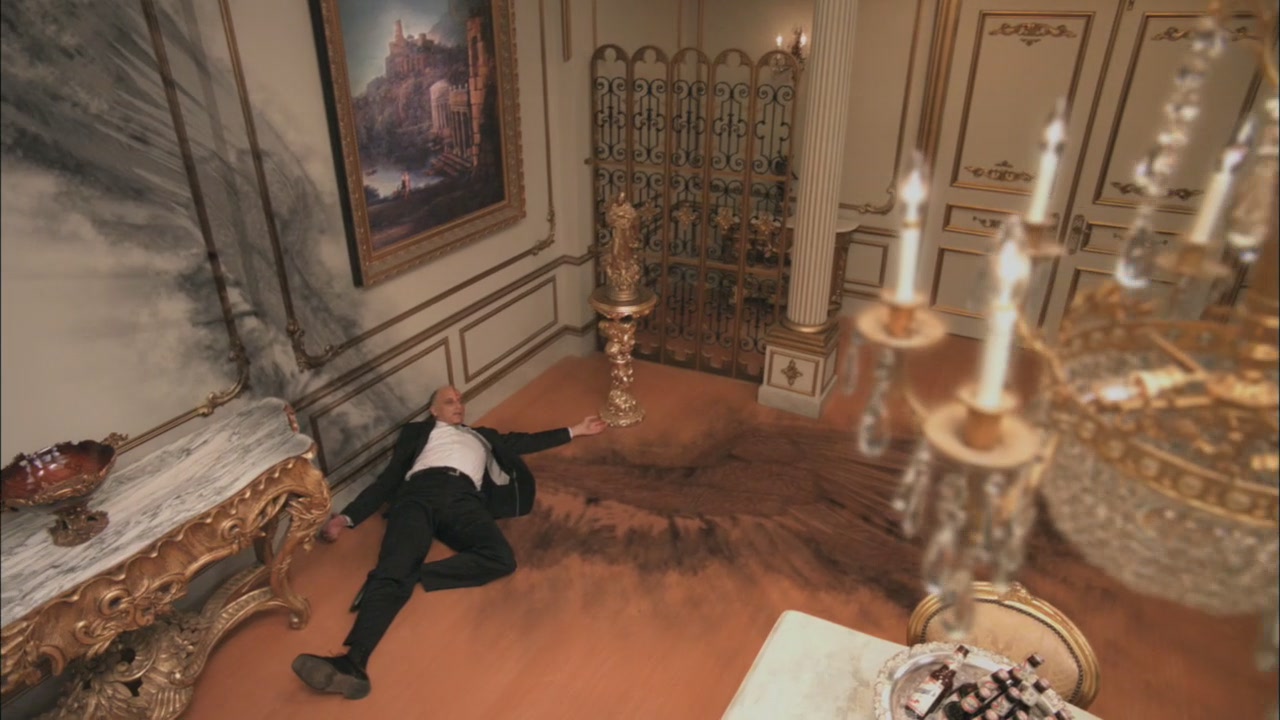 Castiel paints a banishing sigil to displace Zachariah indefinitely.